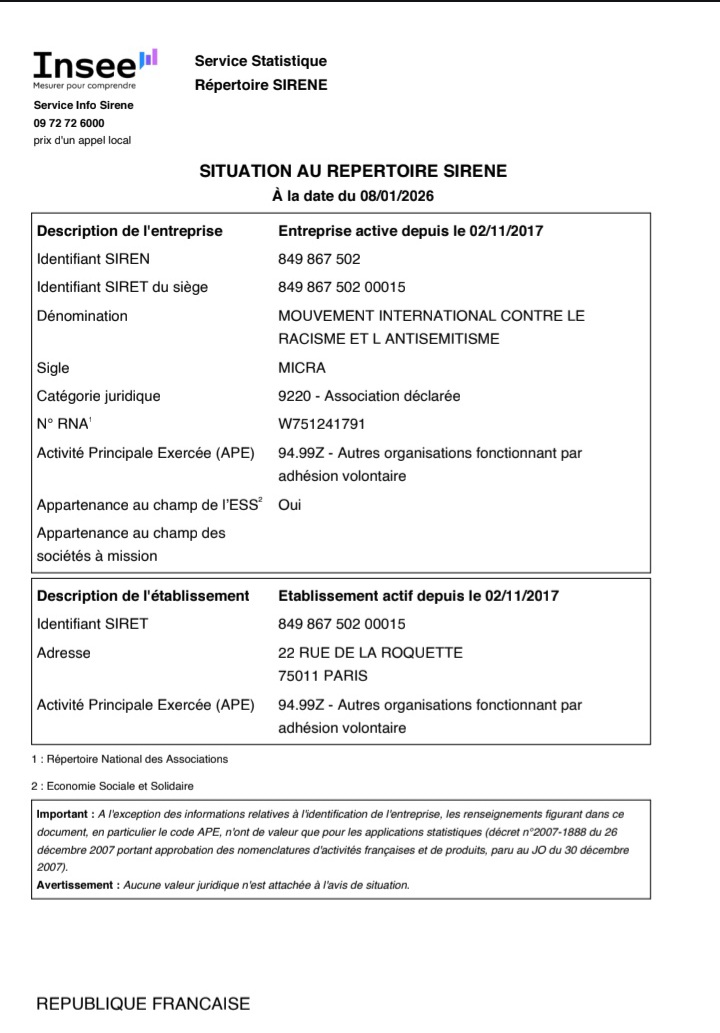 L’association anciennement connue sous le nom de MICRA (Mouvement International Contre le Racisme l’Antisémitisme) change de nom et devient désormais Contre la Haine, l’Antisémitisme, le Racisme C. H. A. R.