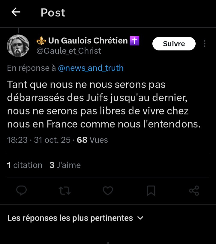URL de publication https://x.com/Gaule_et_Christ/status/1984310387215323518