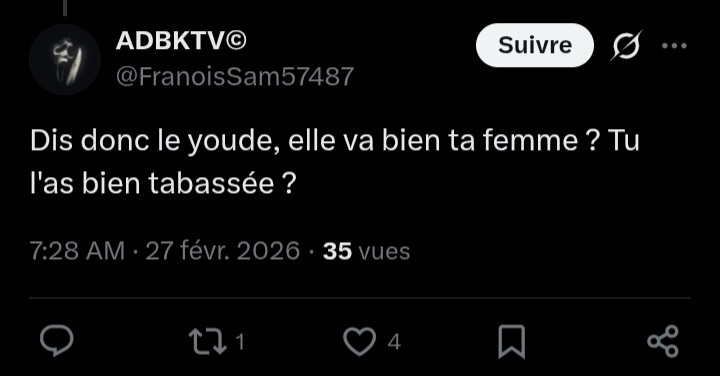 L’Association C.H.A.R., engagée contre toutes les formes de haine, a récemment mis en lumière un exemple glaçant : le compte @FranoisSam57487 (alias ADBKTV©) qui publie des messages ouvertement antisémites.